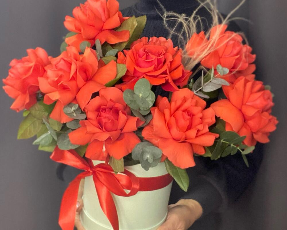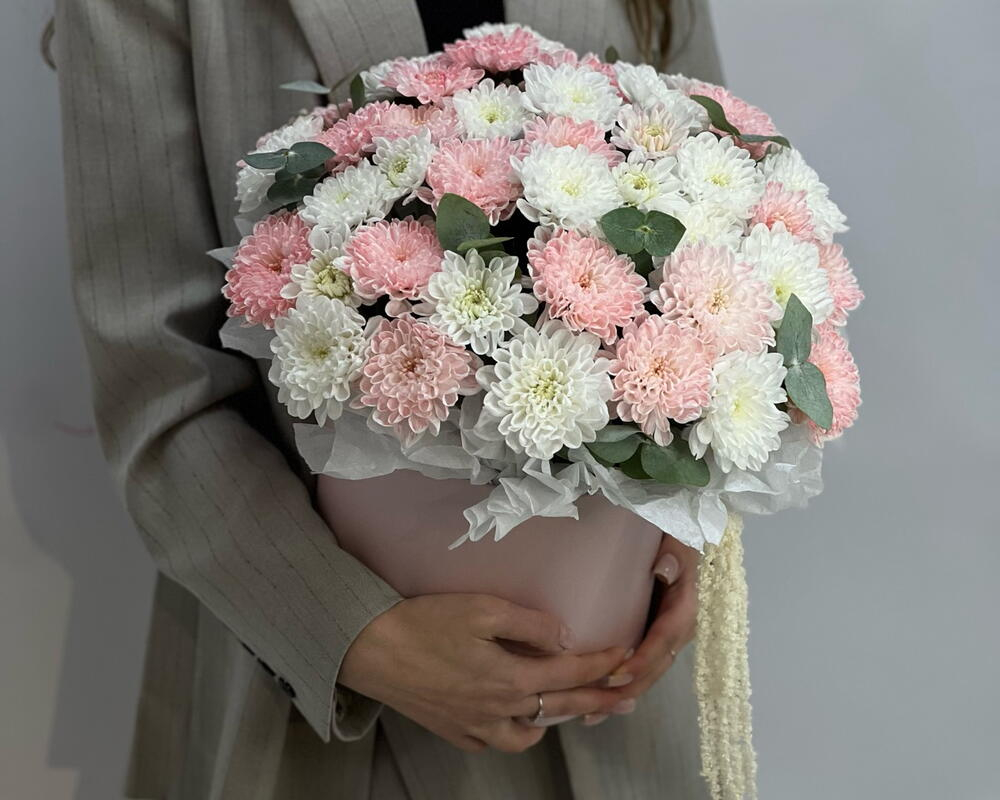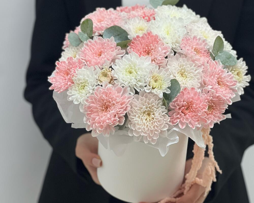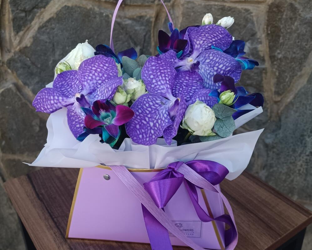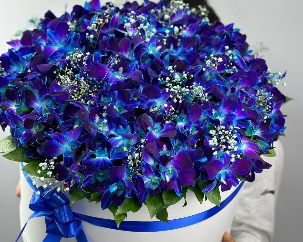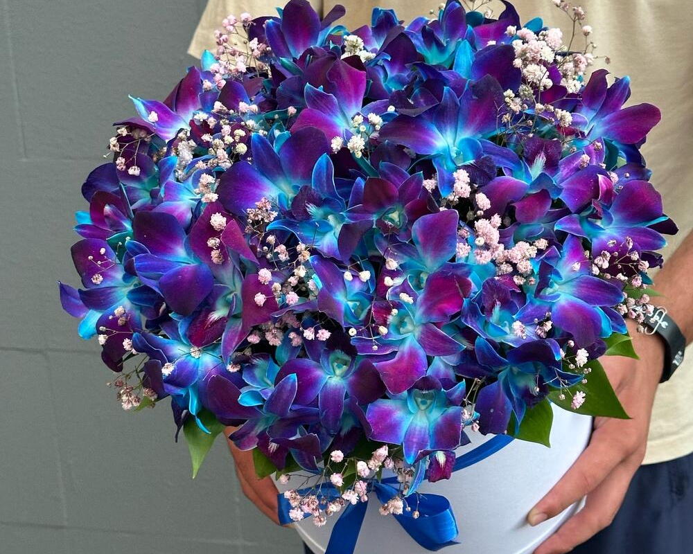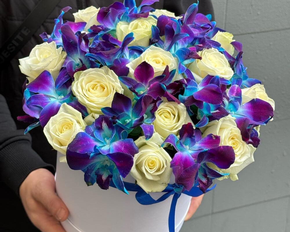 Ароматная композиция Белых и зеленых орхидеи в коробке
